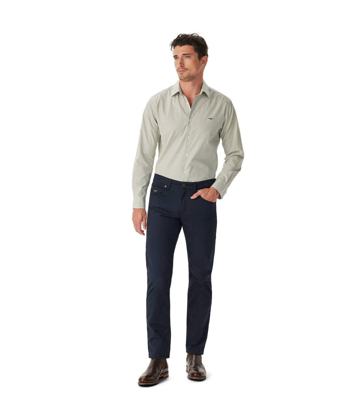R.M.Williams Quinn Poplin Shirt - Navy Green