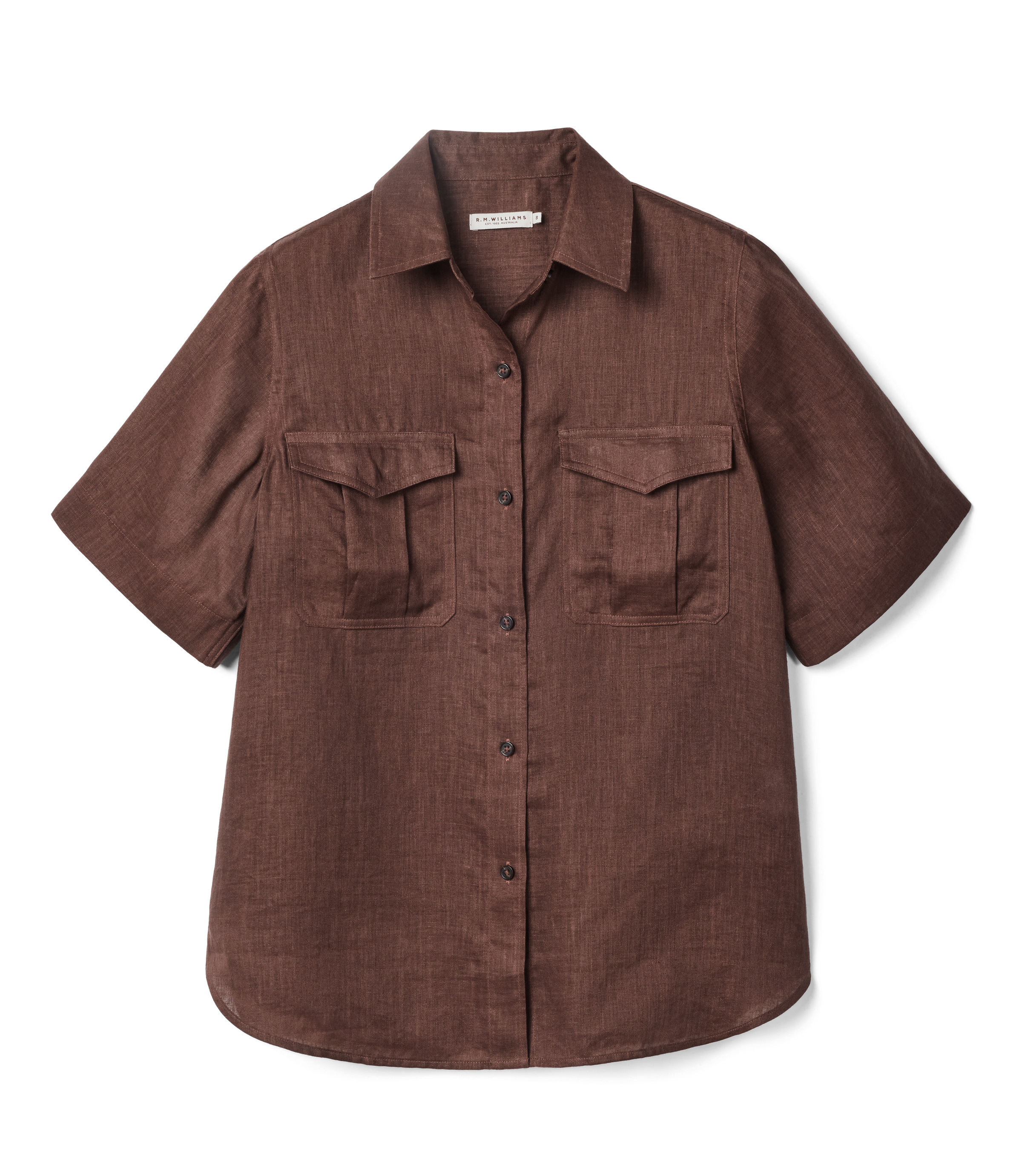 A relaxed summer staple, the Crispin Short Sleeve Linen Shirt is crafted from breathable linen for lightweight comfort. Designed with utility-inspired details, it features two front patch pockets with concealed button flaps, a classic regular collar with contrast buttons, and a gently curved hem for a polished finish. Perfect for warm-weather layering or worn on its own, it’s a versatile shirt that balances casual ease with thoughtful tailoring.